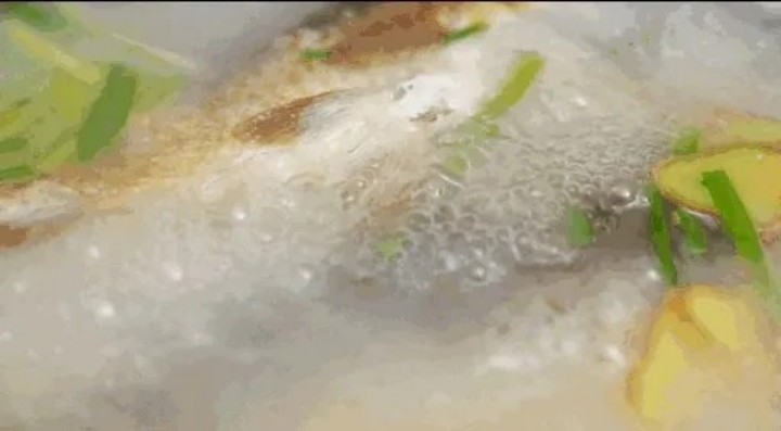 (3)倒入一定量的開水繼續煮5分(fēn)鍾,可(kě)以看到魚湯慢慢變白,越煮越濃白;